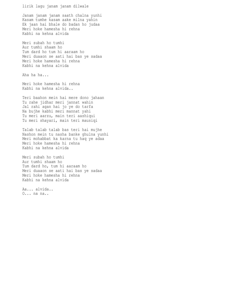 Doc Lirik Lagu Janam Janam Dilwale Rashiqah Razlan Academia Edu